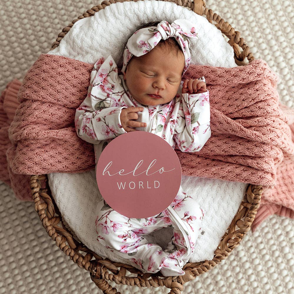 This pack contains 25 Reversible milestone cards that coordinate with our Cherry Blossom organic wraps and clothing.