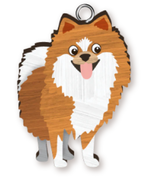 Keyrings just got a whole lot cuter... Created to cater to every proud pet lover with several available dog designs, our unique range of keyrings capture an incredible selection of breeds! With a printed wood colour design, Pet Keyrings are set to be the the ultimate gift. Pomeraian.