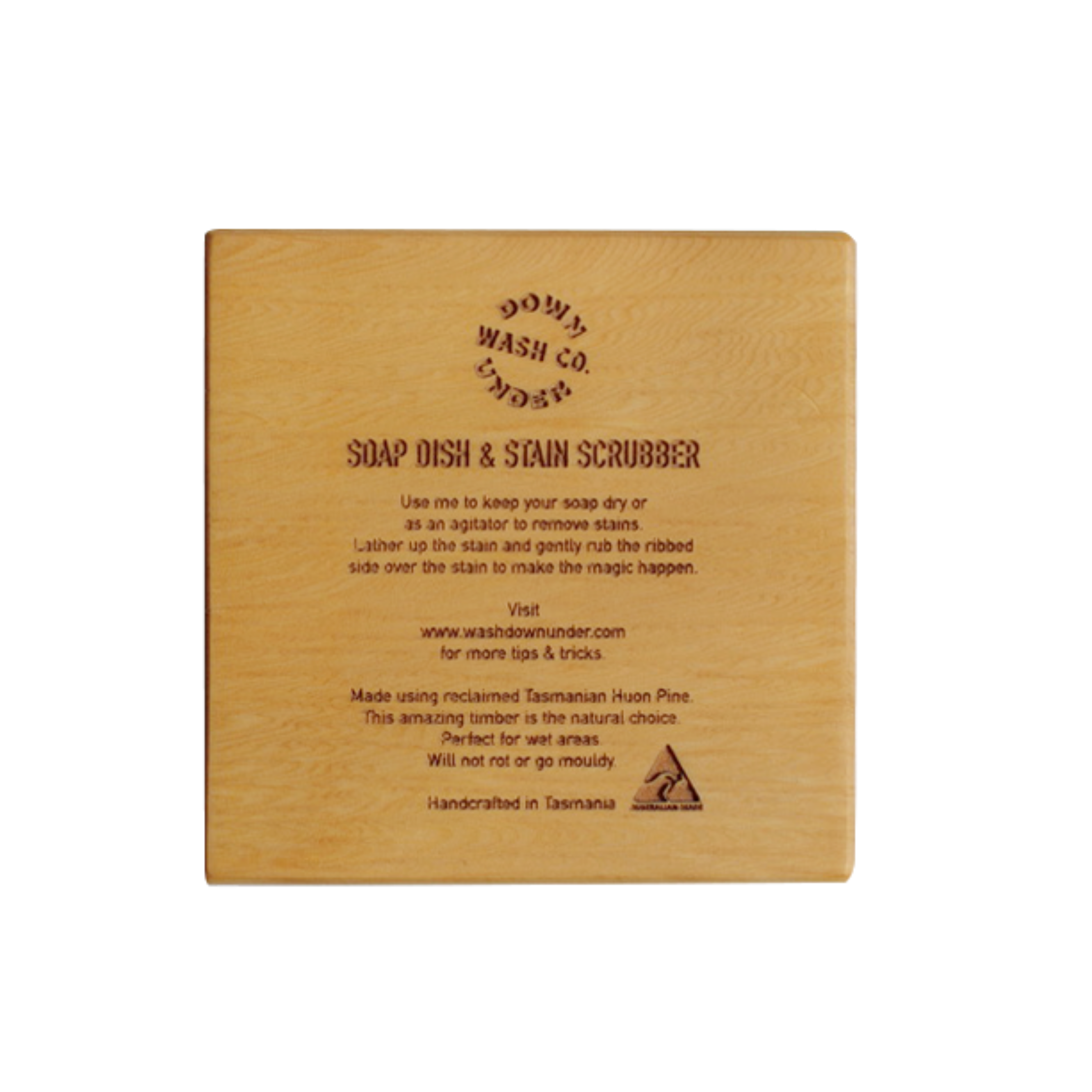 Storage: Wash & dry your soap dish & stain scrubber to to keep it in great condition. Don't worry though as Huon Pine will not rot or go mouldy.