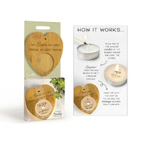 Delight someone special with the Surprise Candle Sister! This bamboo tealight holder reveals a lovely surprise as you burn the candle—a glowing message that says, “Your Time Is Now.” Beautifully packaged and including four tealight candles, it’s a playful way to inspire and brighten any moment. Light it up and watch the magic happen!
